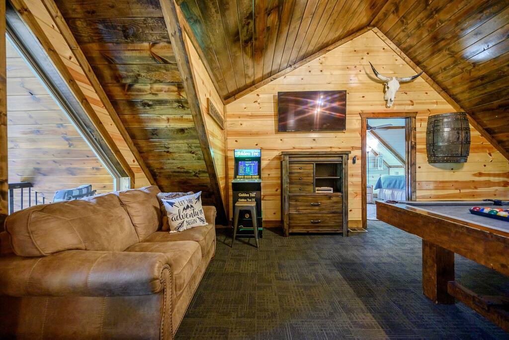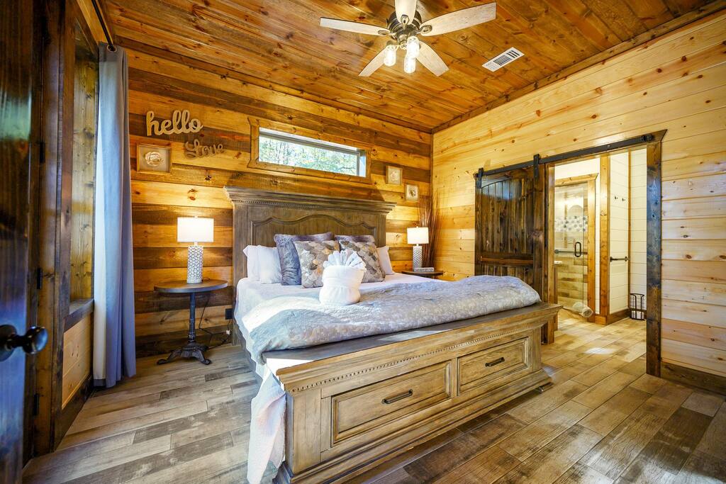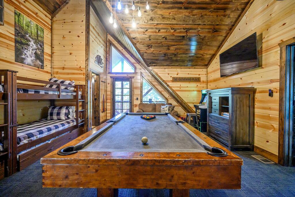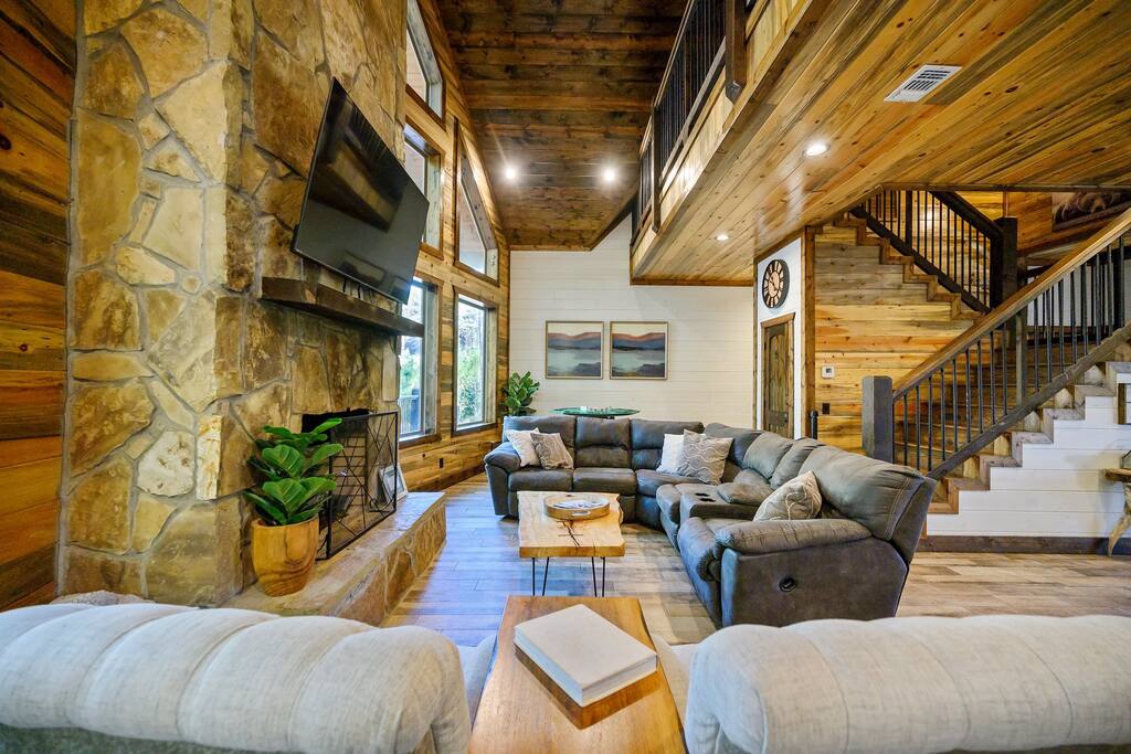 S’mores & Fishin’ – 5 BD Upscale Waterfront Cabin near Hochatown Attractions Nestled on the waterfront near Broken Bow, OK, our upscale cabin offers easy access to all Hochatown attractions. Enjoy fishing right off the private deck, exploring in our kayaks, unwinding in the hot tub, roasting s’mores around the firepit, or enjoying a game of pool or shuffleboard in our game room plus newly installed EV charger. 6 Min drive to Naaman's BBQ 6 Min drive to The Cave Virtual Reality 6 Min drive to Sasquatch's Candy Den 7 Min drive to Girl's Gone Wine 7 Min drive to Beavers Bend Brewery 7 Min drive to Abendigo's 7 Min drive to Grateful Head Pizza 8 Min drive to Petting Zoo, 8 Min drive to Beaver's Bend Mining Company 12 Min drive to Rugaru Adventures Ziplining 19 Min drive to Beavers Bend State Park Relax, Enjoy, and Explore Hochatown! Thinking about a micro wedding? We get a lot of requests! 🥰 Please make sure to read the important note at the end of the listing for details before booking. The space KEY FEATURES: ☀ Pond and Kayaks ☀ Pirate Ship Playground, slide and swings ☀ Outdoor Hot Tub ☀ Barrel Sauna plus outdoor shower ☀ Outdoor Fire Pit ☀ Outdoor Fireplace ☀ Outdoor Grill ☀ Pool table, arcade game machine and shuffle board ☀ Indoor Fireplace ☀ Outdoor Roku TV ☀ 5 Bedrooms: sleeps 20! ☀ Fully equipped kitchen ☀ EV charger ☀ Stocked pond S'mores and Fishin' is a luxury waterfront cabin near Broken Bow, OK located around all the attractions of Hochatown! Sleeps 20! Enjoy our private deck, take a ride in one of our kayaks, soak in our hot tub, make smore's at our firepit, or play pool, shuffle board or Golden Tee golf video game in our game room. Open up our glass garage door to our massive deck to make the most out of your indoor/outdoor experience! We have something for everyone including our custom made pirate ship playhouse, swings and spiral slide for the kiddos! Close to Beaver’s Bend State Park and Broken Bow Lake! ☆☆ Discover the Natural Beauty of Hochatown, Oklahoma!☆☆ Nestled in the stunning southeast region of Oklahoma, Hochatown is a beloved destination for travelers from North Texas, Louisiana, Oklahoma, and Arkansas. Renowned for its breathtaking natural beauty and welcoming atmosphere, Hochatown offers the perfect mix of relaxation and adventure for visitors of all ages. Things to Do in Hochatown: - Hike scenic trails in the Kiamichi Forest. - Enjoy boating, fishing, or kayaking on the sparkling waters of Broken Bow Lake. - Sample local flavors at nearby wineries, breweries, and eateries. - Explore unique attractions, perfect for the whole family. Whether you're seeking outdoor thrills or cozy moments in nature, Hochatown is your ideal escape. Look forward to receiving our welcome letter with a curated list of activities and attractions to help you make the most of your visit. ☆☆ BEDROOM 1 ☆☆ This spacious downstairs en-suite bedroom features: - King bed and is designed for convenience and storage. - TV with Roku - Nightstands - Closet - Ceiling fan for added comfort. - Sofa that converts into two twin beds, perfect for extra sleeping arrangements. The en-suite bathroom features: - Charming soaking copper tub, - Luxurious large walk-in shower - Toilet - Double sink ☆☆ BEDROOM 2 ☆☆ Second downstairs en-suite bedroom features a comfortable king bed and is designed for convenience and storage. It includes nightstands, a closet, Roku TV and a ceiling fan for added comfort The en-suite bathroom features a luxurious large walk-in shower, double sink and a toilet ☆☆ BEDROOM 3 ☆☆ This spacious upstairs en-suite bedroom features a comfortable queen bed, and a twin over double bed bunk. It includes nightstands, a closet, Roku TV and a ceiling fan. The en-suite bathroom features a bathtub, single sink and a toilet. ☆☆ BEDROOM 4 ☆☆ Upstairs bedroom features a comfortable queen bed, and a twin bed. It includes nightstands, a closet, Roku TV and a ceiling fan. ☆☆ LOFT/GAME ROOM ☆☆ Upstairs loft features 2 bunk beds and 1 twin sofa. There is a bathroom attached to the loft with double sink, bathtub and a toilet. In addition, there is a pool table, shuffle board, dart game, boardgames and golf arcade game in the loft. We also have a rollaway bed that can be moved into any of the upstairs rooms. ☆☆ KITCHEN ☆☆ Chef style, fully equipped kitchen with everything you need to prepare meals, including a Keurig, coffee maker, electric kettle, waffle makers , slow cooker and more for added convenience. Dining seating for all guests with 2 large tables - inside seats 8, outside table seats 8 and island seats 4. ☆☆ DECK ☆☆ Multi level deck that includes: Dinning area, outdoor fireplace, outdoor Roku TV, games, slide and a hot tub. Step outside to the deck, where you can enjoy an outdoor meal or sip a drink next to the outdoor fireplace, soak in the hot tub while stargazing or enjoy watching kids play an outdoor games. ☆☆ OUTDOORS ☆☆ Don't miss the firepit and a deck overlooking the pond, enjoy the round of s'mores or kayaking in the pond. Newly installed heater on the deck, so you can enjoy stargazing while staying warm. ENJOY: * Sleeps 20 in beds comfortably with 4 enclosed bedrooms plus a loft bunk room/game room. We also have a rollaway bed that can be moved into any of the upstairs rooms. * Pet friendly with pet fee * TV in every bedroom as well as 75 inch in living room and outside. * Custom garage door that opens the inside dining/kitchen to the outdoor living. * Fully stocked kitchen for most cooking needs including serving dishes, blender, toaster. * Combo coffee maker with coffee pot and Keurig pod function. * Laundry room downstairs * 2 kayaks for our guest to enjoy. * Multi-tiered deck has over 1000 sq feet of outdoor living with an outdoor fireplace, Large outdoor TV with tons of Polywood furniture seating. * Built in outdoor grill connected direct to cabin propane * Large firepi