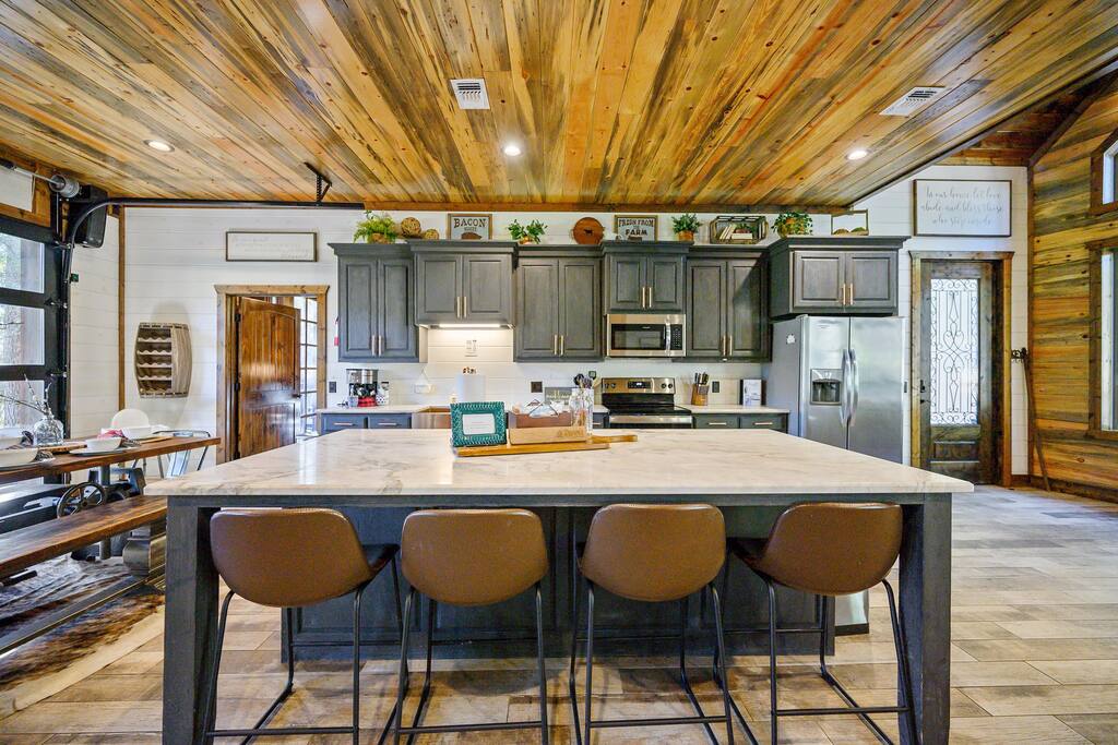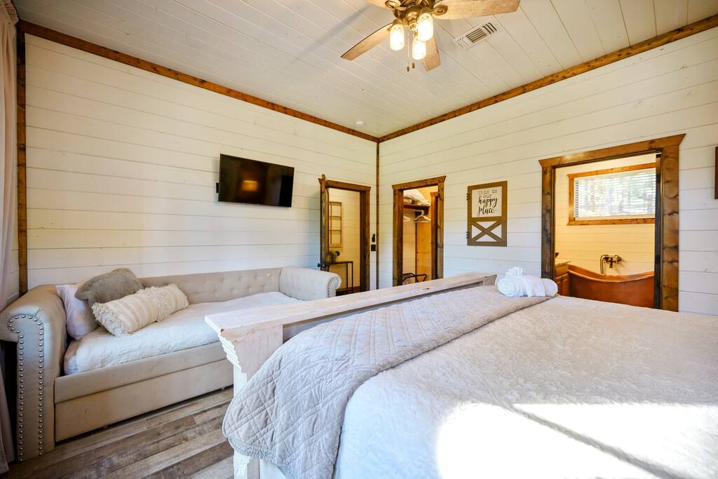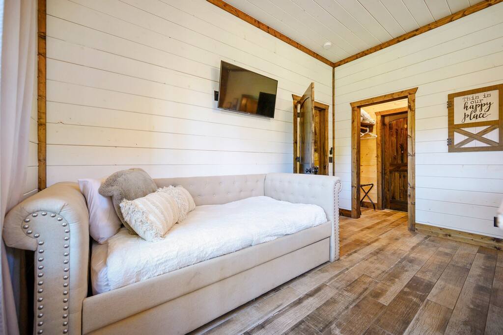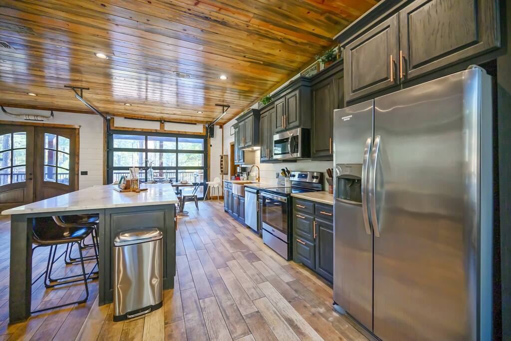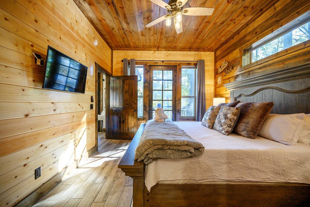 S’mores & Fishin’ – 5 BD Upscale Waterfront Cabin near Hochatown Attractions Nestled on the waterfront near Broken Bow, OK, our upscale cabin offers easy access to all Hochatown attractions. Enjoy fishing right off the private deck, exploring in our kayaks, unwinding in the hot tub, roasting s’mores around the firepit, or enjoying a game of pool or shuffleboard in our game room plus newly installed EV charger. 6 Min drive to Naaman's BBQ 6 Min drive to The Cave Virtual Reality 6 Min drive to Sasquatch's Candy Den 7 Min drive to Girl's Gone Wine 7 Min drive to Beavers Bend Brewery 7 Min drive to Abendigo's 7 Min drive to Grateful Head Pizza 8 Min drive to Petting Zoo, 8 Min drive to Beaver's Bend Mining Company 12 Min drive to Rugaru Adventures Ziplining 19 Min drive to Beavers Bend State Park Relax, Enjoy, and Explore Hochatown! Thinking about a micro wedding? We get a lot of requests! 🥰 Please make sure to read the important note at the end of the listing for details before booking. The space KEY FEATURES: ☀ Pond and Kayaks ☀ Pirate Ship Playground, slide and swings ☀ Outdoor Hot Tub ☀ Barrel Sauna plus outdoor shower ☀ Outdoor Fire Pit ☀ Outdoor Fireplace ☀ Outdoor Grill ☀ Pool table, arcade game machine and shuffle board ☀ Indoor Fireplace ☀ Outdoor Roku TV ☀ 5 Bedrooms: sleeps 20! ☀ Fully equipped kitchen ☀ EV charger ☀ Stocked pond S'mores and Fishin' is a luxury waterfront cabin near Broken Bow, OK located around all the attractions of Hochatown! Sleeps 20! Enjoy our private deck, take a ride in one of our kayaks, soak in our hot tub, make smore's at our firepit, or play pool, shuffle board or Golden Tee golf video game in our game room. Open up our glass garage door to our massive deck to make the most out of your indoor/outdoor experience! We have something for everyone including our custom made pirate ship playhouse, swings and spiral slide for the kiddos! Close to Beaver’s Bend State Park and Broken Bow Lake! ☆☆ Discover the Natural Beauty of Hochatown, Oklahoma!☆☆ Nestled in the stunning southeast region of Oklahoma, Hochatown is a beloved destination for travelers from North Texas, Louisiana, Oklahoma, and Arkansas. Renowned for its breathtaking natural beauty and welcoming atmosphere, Hochatown offers the perfect mix of relaxation and adventure for visitors of all ages. Things to Do in Hochatown: - Hike scenic trails in the Kiamichi Forest. - Enjoy boating, fishing, or kayaking on the sparkling waters of Broken Bow Lake. - Sample local flavors at nearby wineries, breweries, and eateries. - Explore unique attractions, perfect for the whole family. Whether you're seeking outdoor thrills or cozy moments in nature, Hochatown is your ideal escape. Look forward to receiving our welcome letter with a curated list of activities and attractions to help you make the most of your visit. ☆☆ BEDROOM 1 ☆☆ This spacious downstairs en-suite bedroom features: - King bed and is designed for convenience and storage. - TV with Roku - Nightstands - Closet - Ceiling fan for added comfort. - Sofa that converts into two twin beds, perfect for extra sleeping arrangements. The en-suite bathroom features: - Charming soaking copper tub, - Luxurious large walk-in shower - Toilet - Double sink ☆☆ BEDROOM 2 ☆☆ Second downstairs en-suite bedroom features a comfortable king bed and is designed for convenience and storage. It includes nightstands, a closet, Roku TV and a ceiling fan for added comfort The en-suite bathroom features a luxurious large walk-in shower, double sink and a toilet ☆☆ BEDROOM 3 ☆☆ This spacious upstairs en-suite bedroom features a comfortable queen bed, and a twin over double bed bunk. It includes nightstands, a closet, Roku TV and a ceiling fan. The en-suite bathroom features a bathtub, single sink and a toilet. ☆☆ BEDROOM 4 ☆☆ Upstairs bedroom features a comfortable queen bed, and a twin bed. It includes nightstands, a closet, Roku TV and a ceiling fan. ☆☆ LOFT/GAME ROOM ☆☆ Upstairs loft features 2 bunk beds and 1 twin sofa. There is a bathroom attached to the loft with double sink, bathtub and a toilet. In addition, there is a pool table, shuffle board, dart game, boardgames and golf arcade game in the loft. We also have a rollaway bed that can be moved into any of the upstairs rooms. ☆☆ KITCHEN ☆☆ Chef style, fully equipped kitchen with everything you need to prepare meals, including a Keurig, coffee maker, electric kettle, waffle makers , slow cooker and more for added convenience. Dining seating for all guests with 2 large tables - inside seats 8, outside table seats 8 and island seats 4. ☆☆ DECK ☆☆ Multi level deck that includes: Dinning area, outdoor fireplace, outdoor Roku TV, games, slide and a hot tub. Step outside to the deck, where you can enjoy an outdoor meal or sip a drink next to the outdoor fireplace, soak in the hot tub while stargazing or enjoy watching kids play an outdoor games. ☆☆ OUTDOORS ☆☆ Don't miss the firepit and a deck overlooking the pond, enjoy the round of s'mores or kayaking in the pond. Newly installed heater on the deck, so you can enjoy stargazing while staying warm. ENJOY: * Sleeps 20 in beds comfortably with 4 enclosed bedrooms plus a loft bunk room/game room. We also have a rollaway bed that can be moved into any of the upstairs rooms. * Pet friendly with pet fee * TV in every bedroom as well as 75 inch in living room and outside. * Custom garage door that opens the inside dining/kitchen to the outdoor living. * Fully stocked kitchen for most cooking needs including serving dishes, blender, toaster. * Combo coffee maker with coffee pot and Keurig pod function. * Laundry room downstairs * 2 kayaks for our guest to enjoy. * Multi-tiered deck has over 1000 sq feet of outdoor living with an outdoor fireplace, Large outdoor TV with tons of Polywood furniture seating. * Built in outdoor grill connected direct to cabin propane * Large firepi