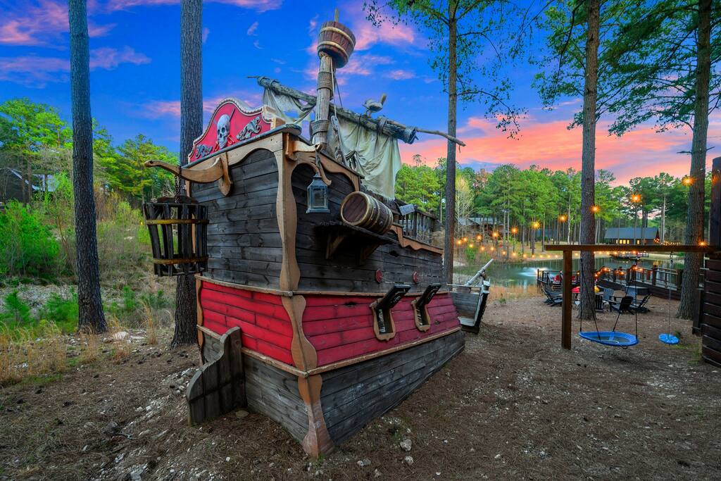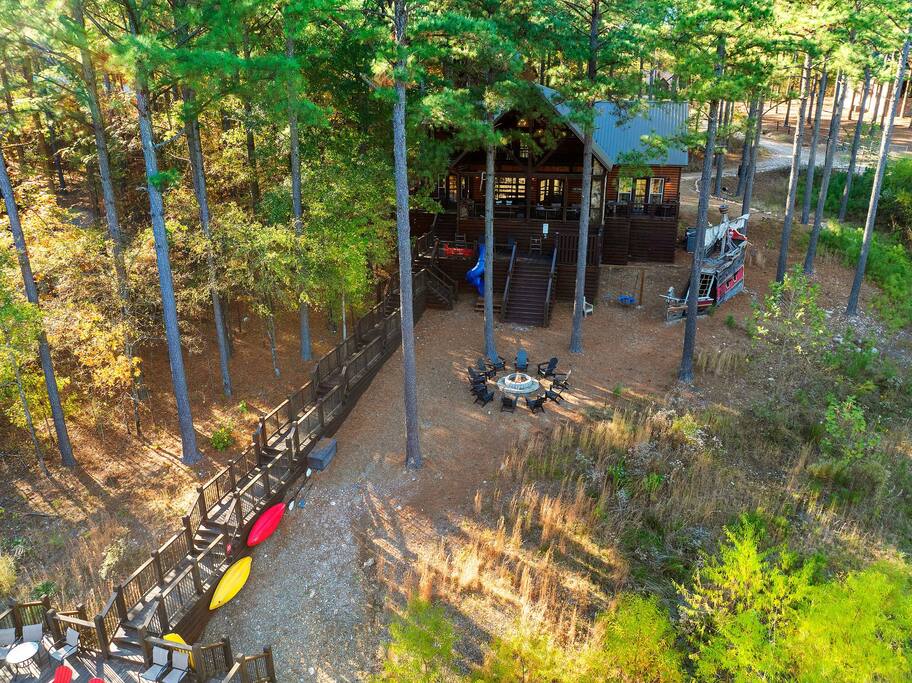 Escape to your private pond-front retreat - minutes from Hochatown & Broken Bow Lake: - Relax & Recharge: Private hot tub + sauna - Year-Round Fun: Stocked pond with fish, kayaks, and deck heater for colder months - Game Loft: Pool table, shuffleboard, and mini arcade - Plenty of Space: With 4 bedrooms and a loft-style bunk room, we sleep up to 20 - Outdoor Adventures: Pirate ship playground, slide, outdoor fireplace & TV - Roast s’mores by the firepit - Convenience: EV charging on-site